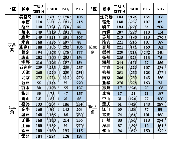报告显示,我国城市空气质量的具体状况是:空气中颗粒物(PM10)污染有所改善,PM10暴露人口的比例以中等空气质量最多,并呈增加趋势,空气质量差的比例减少;SO2(二氧化硫)污染有较大改善,基于SO2的不同空气质量状况下的城市数量比例与暴露人口比例的状况及变化趋势基本吻合,共同表明无论是人口规模大的特大城市,还是中等城市、小城市,其SO2污染状况均普遍得到改善;NO2(二氧化氮)污染不严重,但有所恶化,NO2空气质量中等的城市暴露人口比例增加,质量好的比例下降;大城市恶化趋势明显。