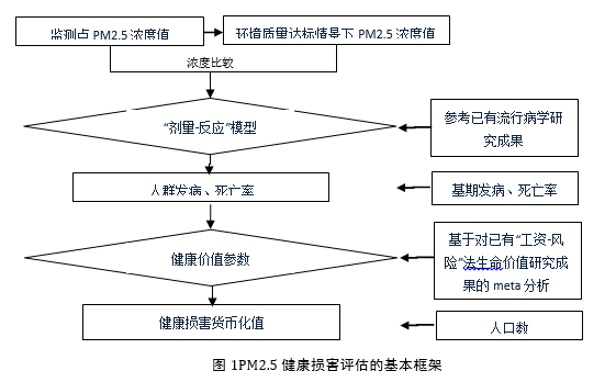 按照如上计算框架,PM2.5健康损害评估,将首先基于“剂量-反应”关系模型,评估PM2.5在当前浓度水平下,相对于PM2.5达标情景,所造成的额外的发病、住院和死亡人口;进而带入生命价值、医疗成本、误工成本等参数,估计PM2.5健康影响的货币化值。
